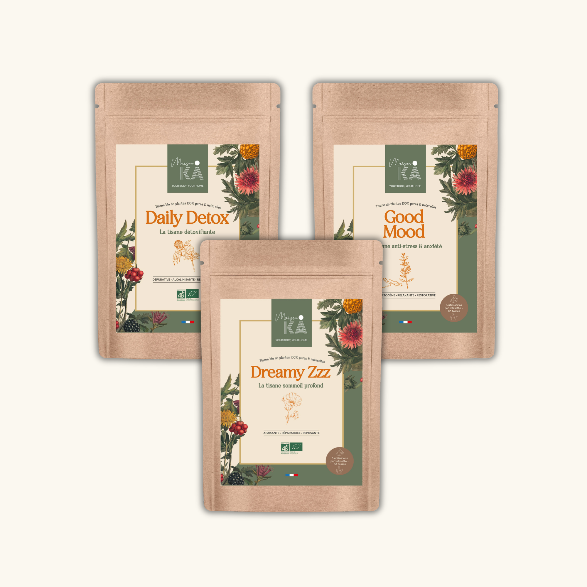 ✓ Sourcées de manière responsable avec des herboristes de France, au Ghana, à l'Amérique du Sud en passant par l'Asie...